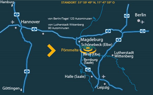 - A 2/AS Burg-Ost (74) - B 246a Richtung Gommern/Schönebeck ca. 35 km folgen - abbiegen Richtung Barby/Pömmelte (L51) - nach ca.1,5 km in Zackmünde rechts abbiegen